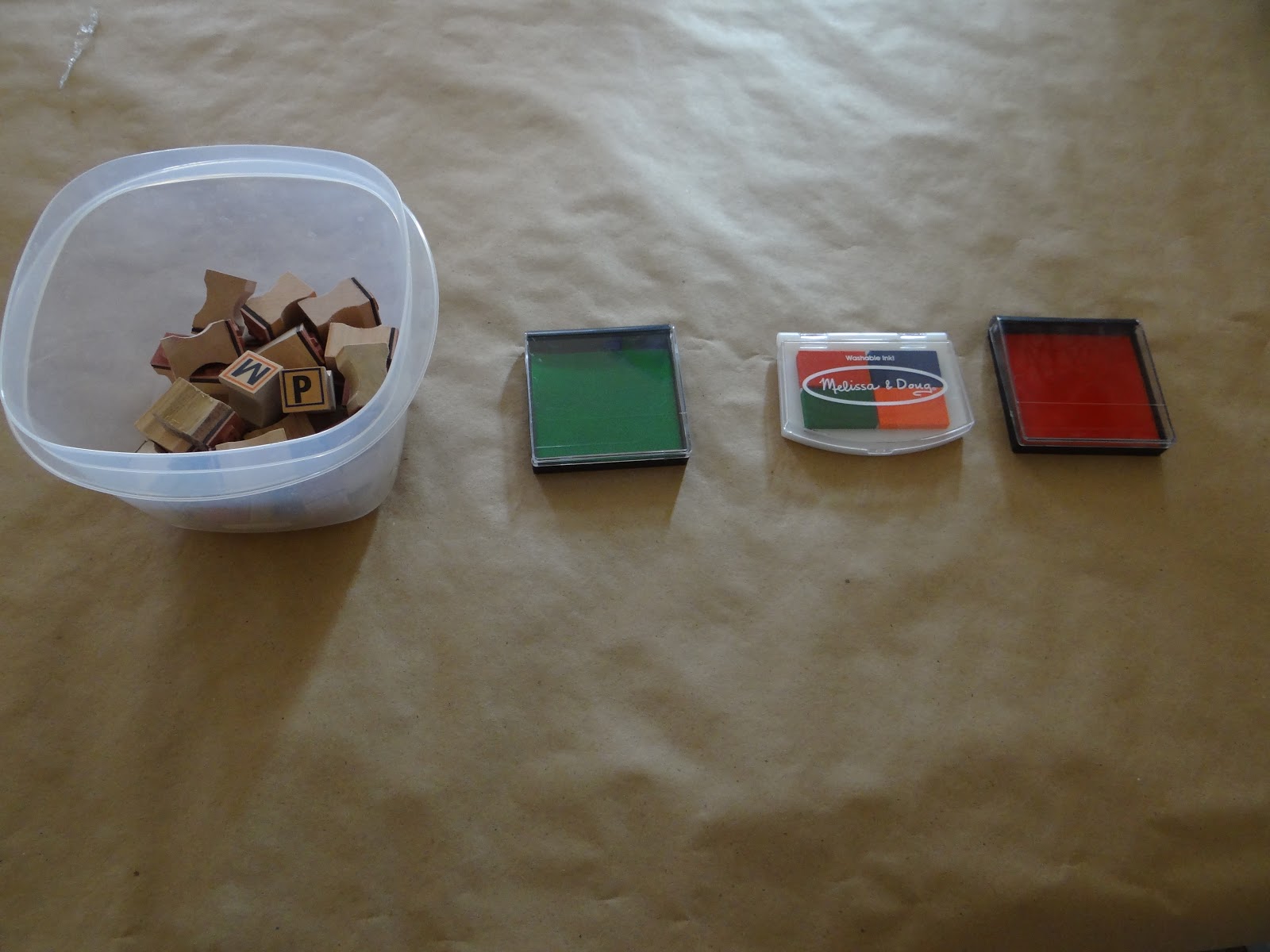 I got some alphabet stamps from The Learning Shop a few weeks ago. I got them out for the first time this week for D (23 months).